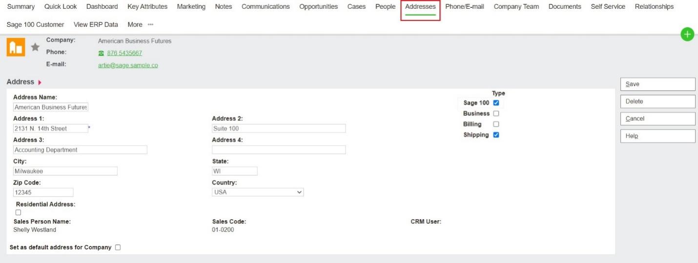 Save the address in Sage CRM.