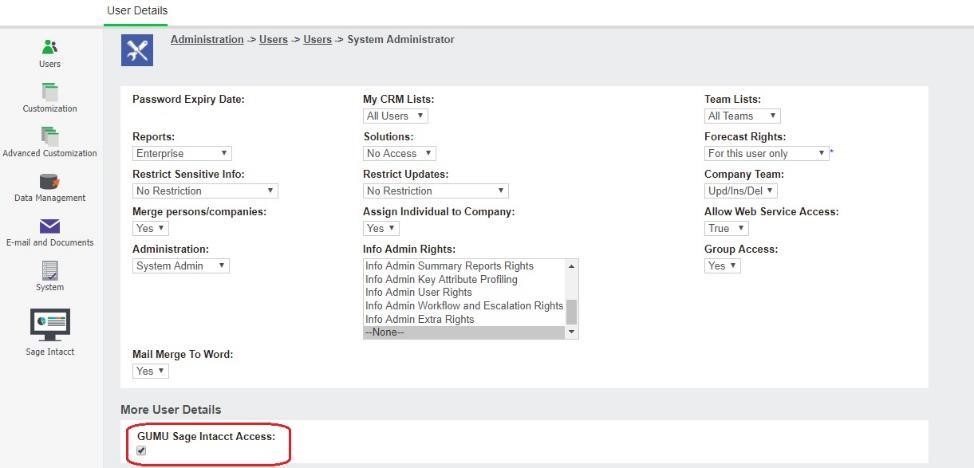 # Enabling GUMU™ Integration access to each Sage CRM user