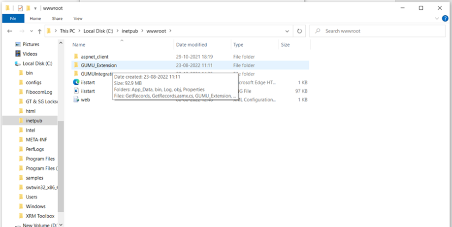 2. Paste the file into this path \[C:\inetpub\wwwroot].