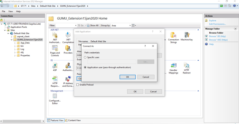 3. Open Internet Information Service (IIS) Manager and find GUMU Extension under the Default Web Site.