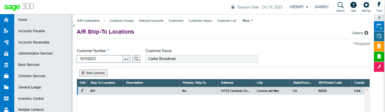 <figure><img src="https://794987320-files.gitbook.io/~/files/v0/b/gitbook-x-prod.appspot.com/o/spaces%2F-MCRVg-TYx3gVa2Tqtf_%2Fuploads%2FGxlFcJjtz8AXbjUb488C%2Fimage.png?alt=media&#x26;token=2a1d6f10-f5b9-4a9a-8456-8f0217a4bc4b" alt=""><figcaption><p><em>Updated Address in Sage 300C</em></p></figcaption></figure>