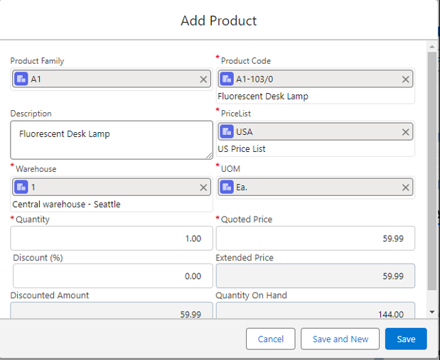 14. The added product will be listed under the Quote line items section under the **Related** tab.