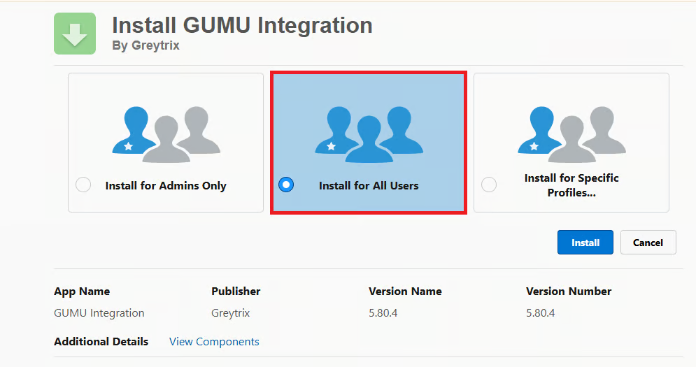 You will be navigated to the Install GUMU™ Installation screen, click on the Install for All Users and click Install.