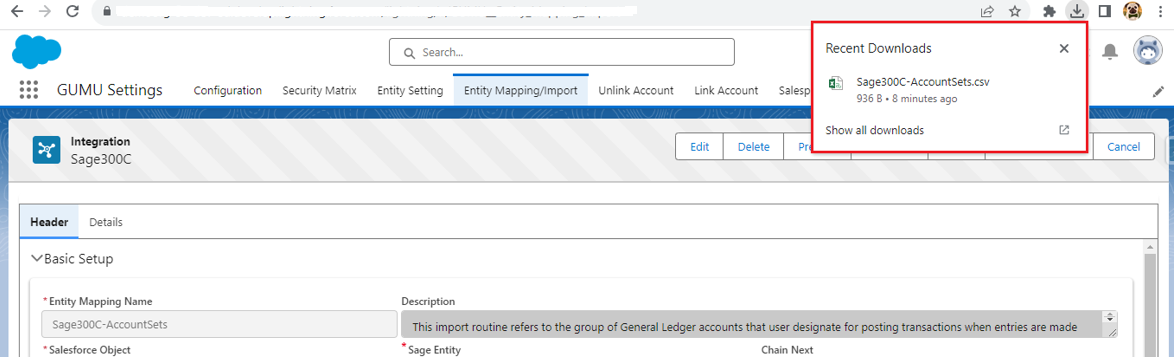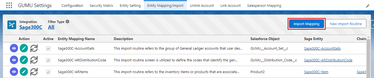 1. Navigate to the “GUMU Settings” application to view the “Entity Mapping/Import” module on the Administration page (you’ll notice default mappings that have been already created during the installation process).