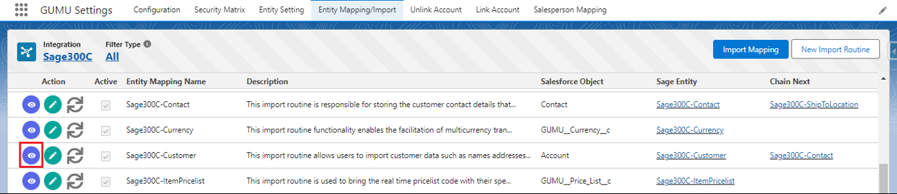 2. We need to sync the import routines one by one, to do so click on the eye icon and then click on the “Sync Now” button.