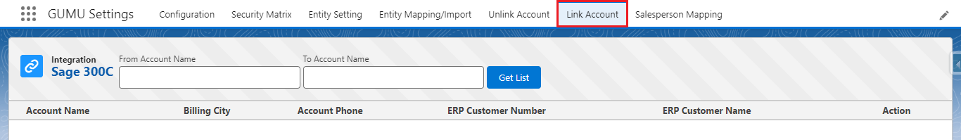 The GUMU™ is a real-time bi-directional integration, using the GUMU™ you can import new customers from Sage to Salesforce. But what if a Customer already exists in Salesforce? You will have to link the existing Customer before bringing it from Sage to Salesforce to avoid duplication. The GUMU™ **Link Account** feature helps you do this.