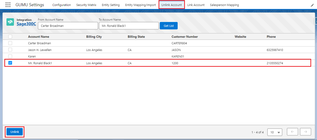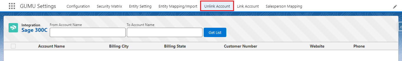 One of the GUMU‘s™ features is that you can remove linking between already linked Salesforce Accounts and Sage Customers. This can be done if you no longer want to keep the relationship between two Accounts/Customers or want to break all transactions that work in real-time. After unlinking, you will not be able to access real-time ERP data, create a Sales Order, or conduct any other transactions.