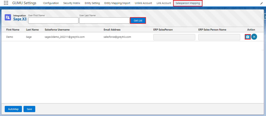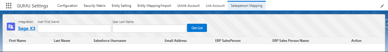 1. Navigate to the **GUMU™ Settings** app and then click on the **Salesperson Mapping** tab.