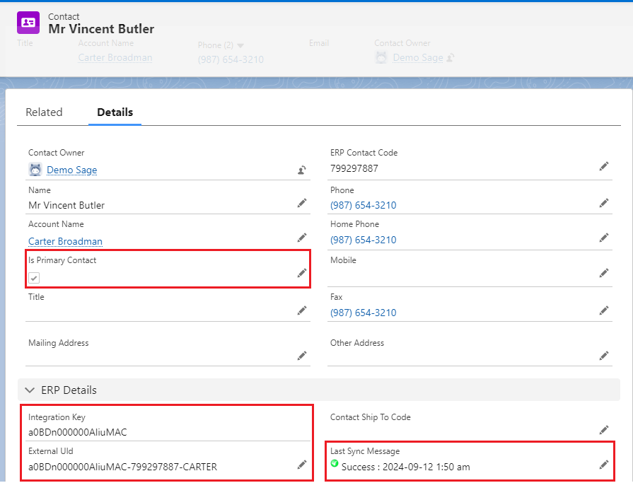 4. A message will appear in the Last Sync Message field, confirming that the Contact has been successfully promoted.